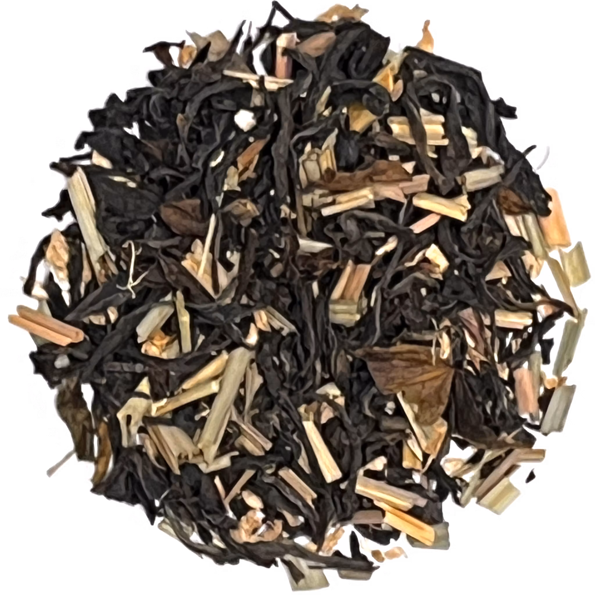 Rød renessanse er en håndrullet, delvis oksidert te fra Assam-regionen. Den gyldne oolong-basen er i utgangspunktet lett og floral. I tillegg er den tilsatt sitrongress og ingefær, som gir den en Frisk og spenstig snert. Småskala-bøndene som produserer den legger stor vekt på å velge unge, myke skudd, og gi den minimal oksidering, for å holde koffeininnholdet lavt, samtidig som de beholder den rike smaken.